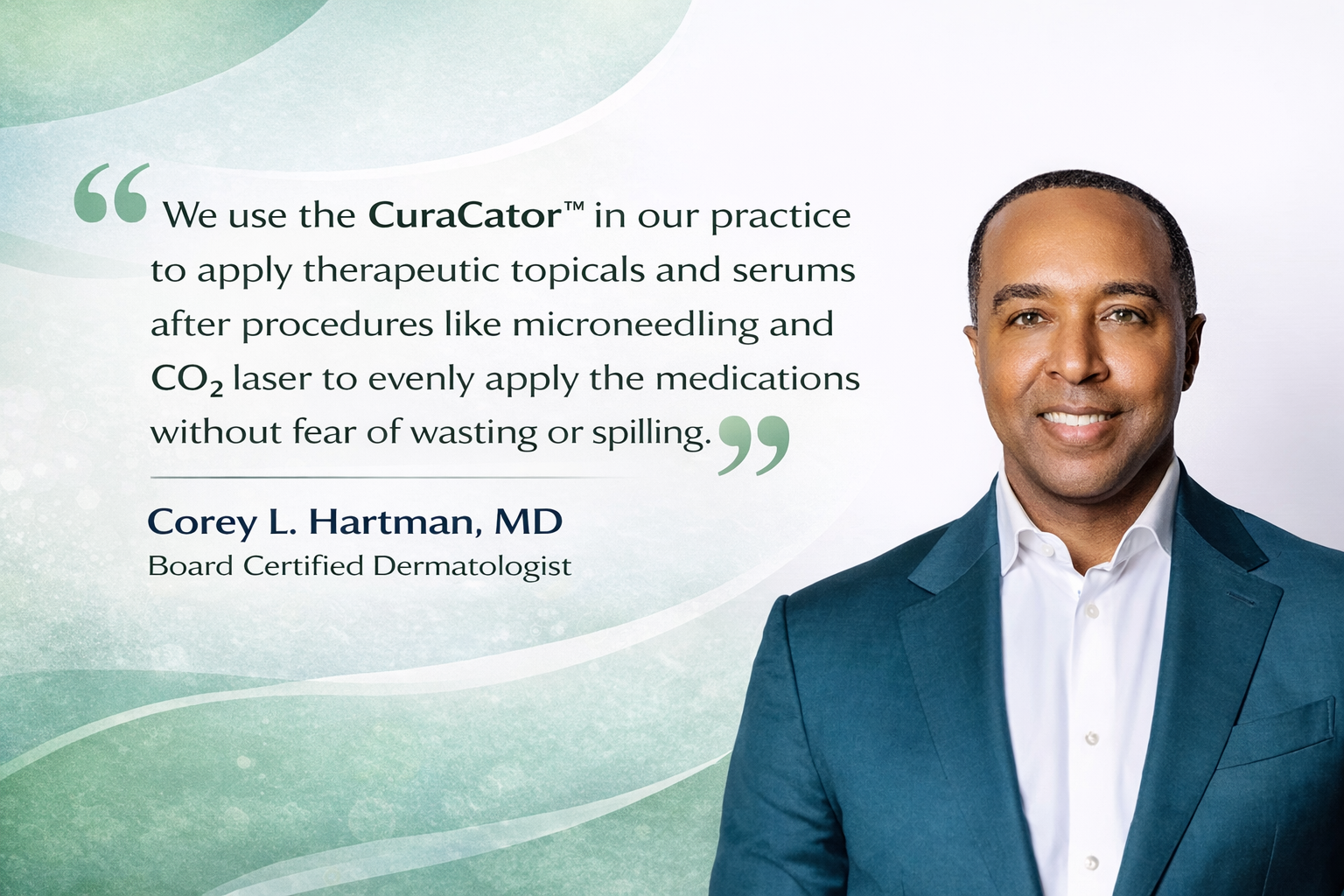 We use the CuraCator in our practice to apply therapeutic topical and serums after procedures like microneedling and CO2 laser to evenly apply the medications without fear of wasting or spilling.